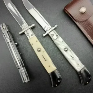 Beautiful Pure Handmade Old School Italian Stiletto Pocket Knife with stainless steel bolsters, a single edged bayonet style blade.
