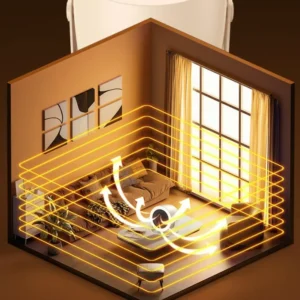 Its lightweight, space-saving body fits easily on desks, floors, or bedside tables, making it suitable for multiple environments such as bedrooms, offices, study rooms, and small living areas. The quiet operation ensures a cozy and peaceful atmosphere without disturbing work or sleep.