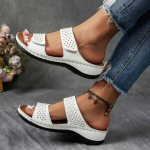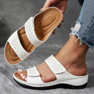 With these sandals, you won’t need expensive doctor’s visits or expensive insoles. Every step you take with the sandals is cushioned by the sturdy and soft sole. The thick sole absorbs shocks and supports the entire foot, not just the heel.