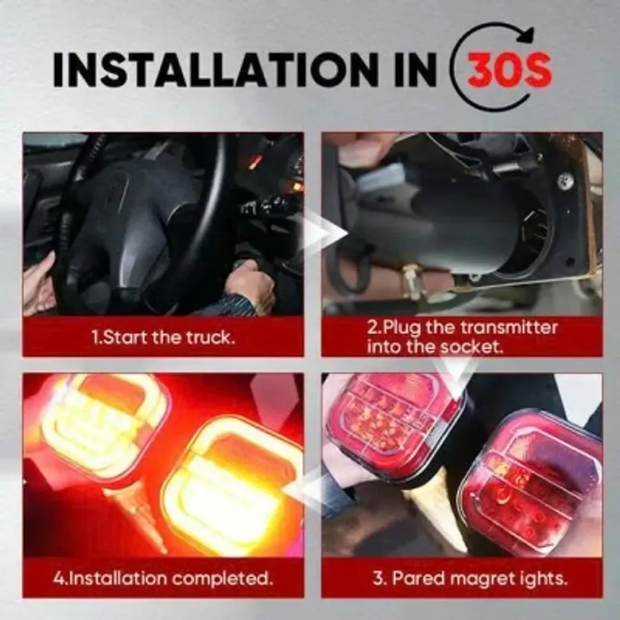 Stable signals: Operating on a 2.4GHz frequency, the trailer lights feature a built-in antenna for stable signal transmission. With a range exceeding 100 feet(30.5 meters), the magnetic trailer light kit is ideal for longer vehicles, ensuring reliable communication and enhanced safety.