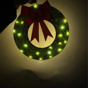 This beautiful wreath is ideal for doors, walls, fireplaces, or outdoor spaces, adding a classic and charming touch to your Christmas decorations. The built-in energy-efficient LED lights softly illuminate the wreath, making it sparkle day and night.